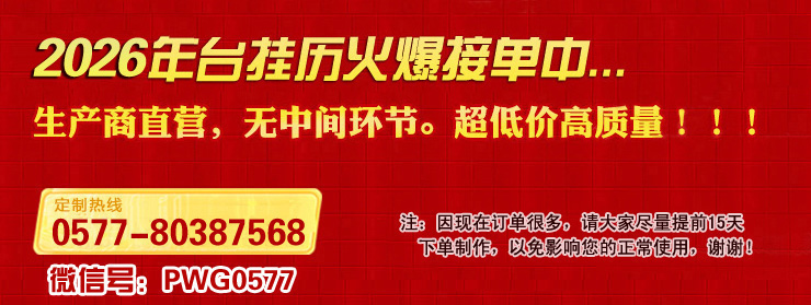 我公司主要制作:2026年掛歷、臺歷、高檔辦公臺歷、撕歷、周歷、福字吊牌、吸塑年歷、環保年歷、年畫、對聯、大班臺歷、亞克力臺歷。我們合作的客戶有:工商銀行、中國平安、太平洋保險、picc保險、新華保險、新華保險、國家電網、南方電網、中國銀行、中國移動、農業銀行、泰康人壽、中國郵政、計劃生育、中國人壽、中國電信、中國聯通、無償獻血、中國信合、建設銀行。